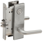 Latchbolt retracted by knob/lever from either side unlessoutside is locked by key. Unlocked from outside by key.Inside knob/lever always free for immediate exit. Auxiliarylatch deadlocks latchbolt when door is closed. Inside leveris always free for immediate egress.