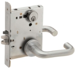 Latchbolt retracted by key from either side. Knob/lever on both sides always inoperative. Auxiliary latch deadlocks latchbolt when door is closed.