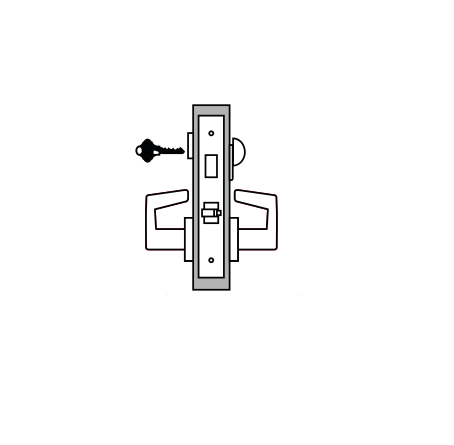 Latchbolt retracted by knob/lever from either side. Deadbolt thrown or retracted by key outside or inside thumbturn. Throwing deadbolt locks outside knob/lever. Turning inside knob/lever simultaneously retracts deadbolt and latchbolt and unlocks outside knob/lever. Inside lever is always free for immediate egress.