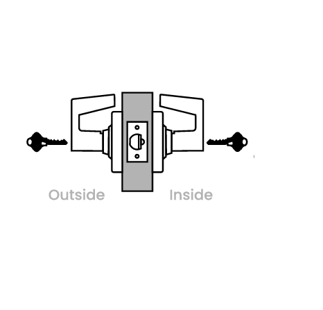 Latch retracted by key from outside when the outside lever is unlocked by key in inside lever. Inside lever is always unlocked.
