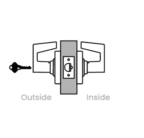 Outside lever locked and unlocked by key. Inside lever always unlocked