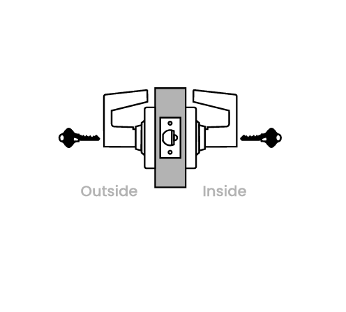 Unlock outside lever by rotating key 180 degrees clockwise in either lever and returning to start position