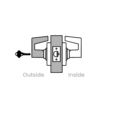Outside lever is fixed. Entrance by key only. Inside lever always unlocked.