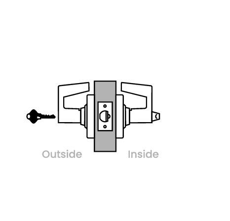 Turn/push-button locking:Pushing and turning the button locks the outside lever, requiring use of a key until the button is manually unlocked. Push-button locking: Pushing button locks outsidelever until unlocked by key or by turning the inside lever.