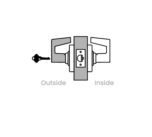 Outside lever is fixed. Entrance by key only. Inside lever always unlocked.