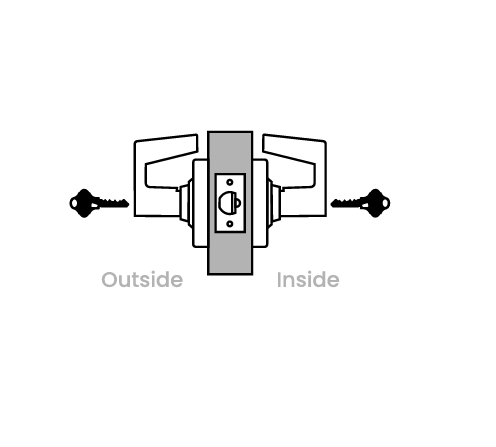 Unlock outside lever by rotating key 180 degrees clockwise in either lever and returning to start position