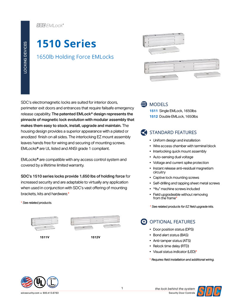 SDC 1511V Single Electromagnetic Lock, Surface Mount, 1650lbs - Aluminum