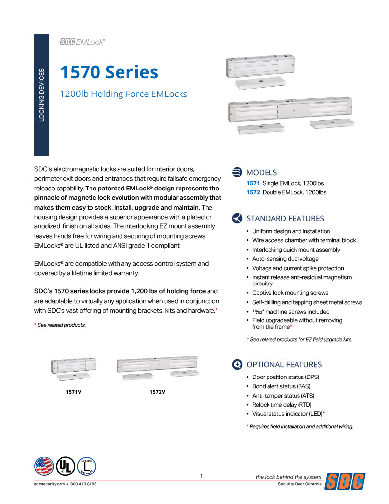 SDC 1571V Single Electromagnetic Lock, Surface Mount , 1200lbs - Aluminum