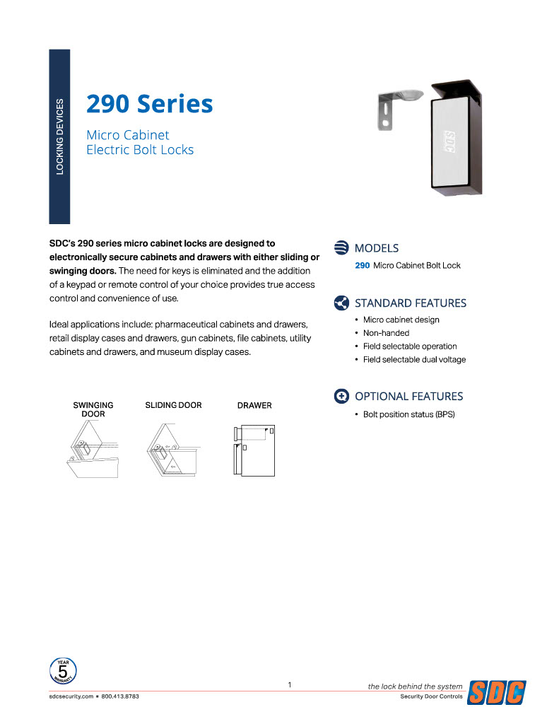- SDC 290 Micro Cabinet Lock, Failsafe/Failsecure, 12/24VDC