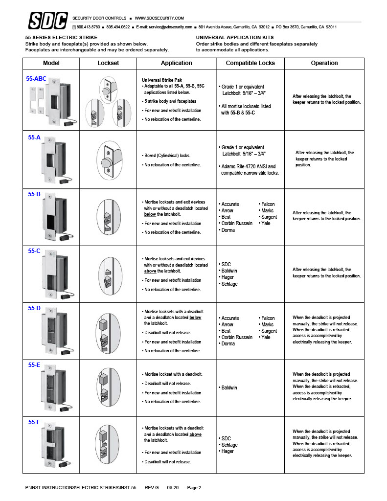 - SDC 55-AU Uniflex Electric Strike For cylindrical locksets with up to 5/8" latch.