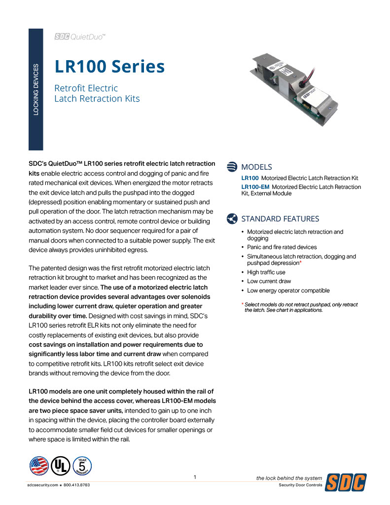 SDC Quiet Duo LR100PDQK 24V Latch Retraction / Dogging Kit For PDQ Exit Devices