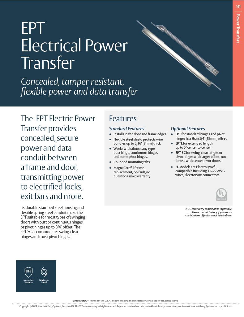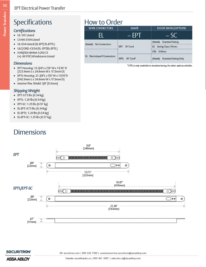 - Securitron EPTL - Electrical Power Transfer - Long Version