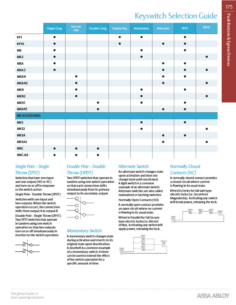Standard with 12 or 24VDC bi-color LEDBacking bracket permits integration with any 1-1/4" [32mm] or 1-1/8" [28mm] mortise cylinder (not included)Additional switch position on backing bracket allows another switch to be activated by turning the key in the opposite direction5 Amp rated plunger switchIncludes anti-tamper screwsUL Listed