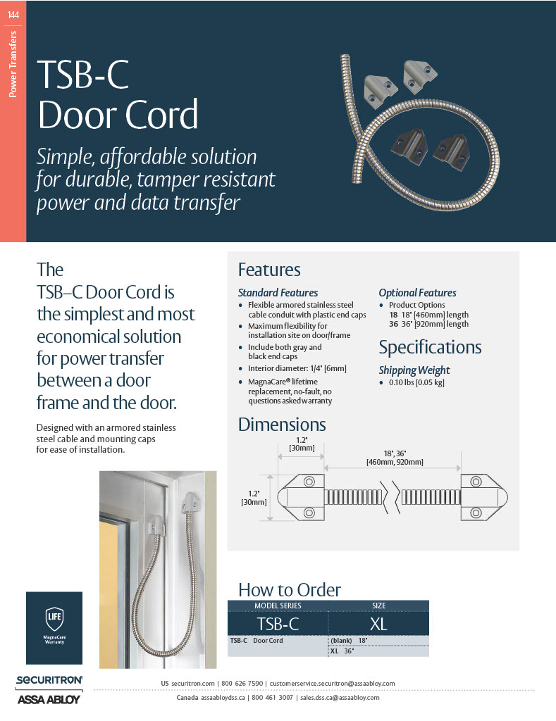 - Securitron TSB-CXL - Door Cord With Gray/Black Caps - 36" Cord