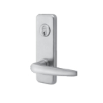 Escutcheons: J Wrought brass, bronze, or stainless steel base material, 7 1/2" H x 2 9/32" W x 17/32" T. M & N Forged brass or bronze, 8" H x 2 1/8" W x 37/64" T, through bolt mounted (no exposed screws outside). M Standard cylinder; N Concealed cylinder.