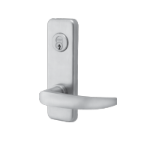 Escutcheons: J Wrought brass, bronze, or stainless steel base material, 7 1/2" H x 2 9/32" W x 17/32" T. M & N Forged brass or bronze, 8" H x 2 1/8" W x 37/64" T, through bolt mounted (no exposed screws outside). M Standard cylinder; N Concealed cylinder.