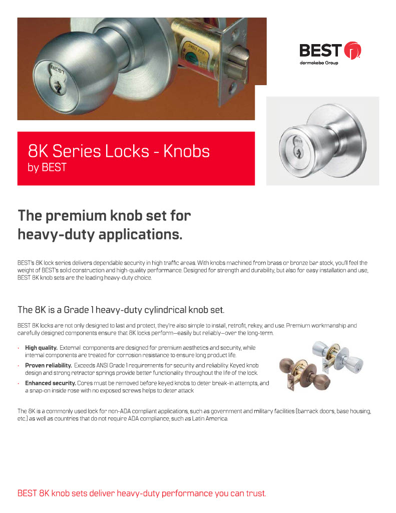 Stanley / BEST 8K-3-7-D-4D-S3-626 Grade 1 Storeroom Knob Lock Satin Chrome