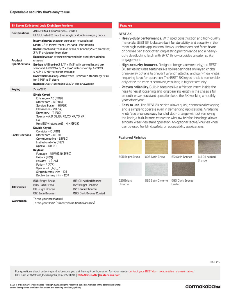 Backset:2 3⁄4" standard, 3 3⁄4" and 5" available.