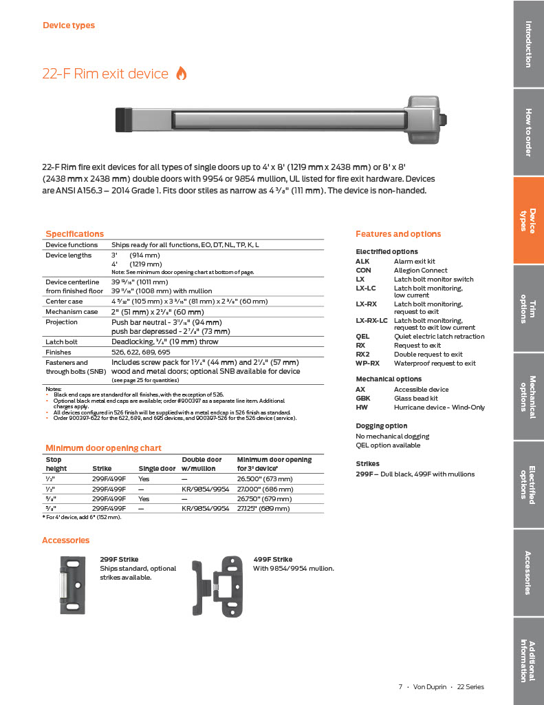 Model:Von Duprin 22NL-OP-F, SP28, SP313, 22NLOPFSP28 , 22NLOPFSP313