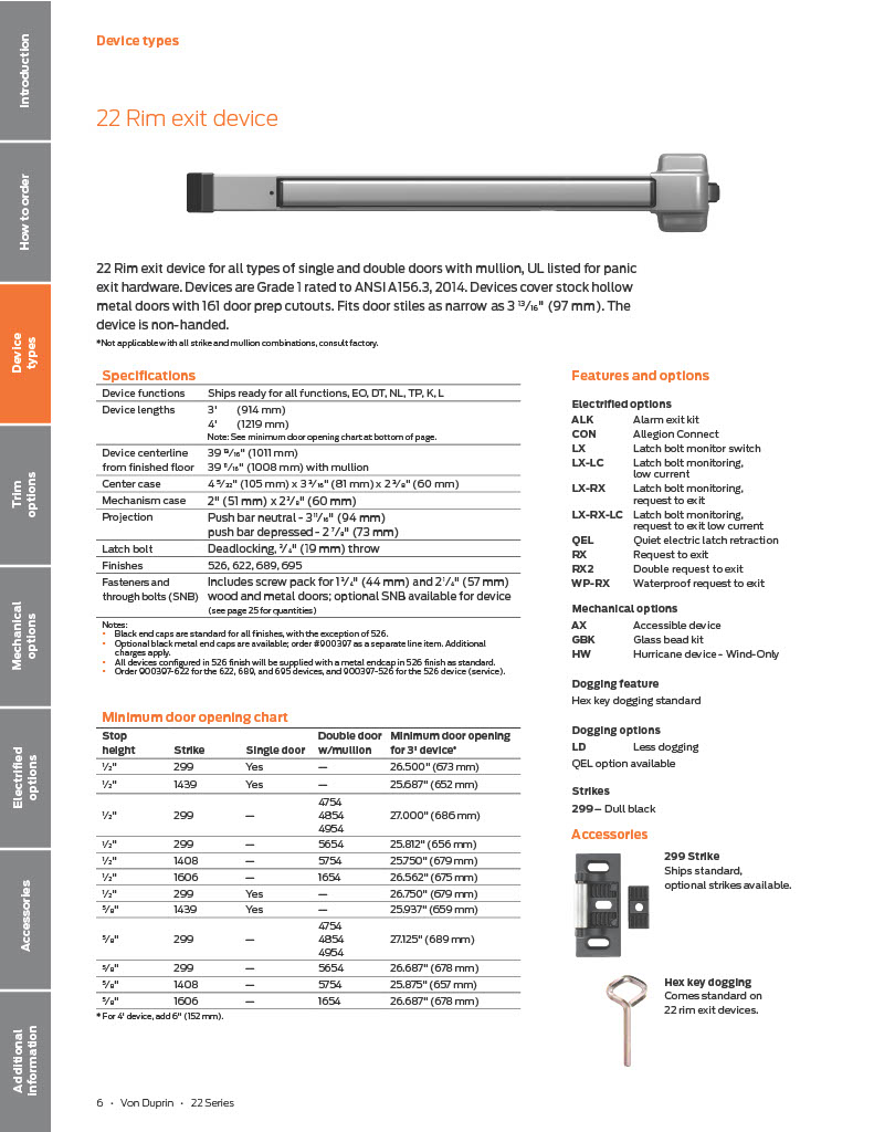 - Von Duprin 22TP Rim Exit Device with 230TP Thumbpiece Trim
