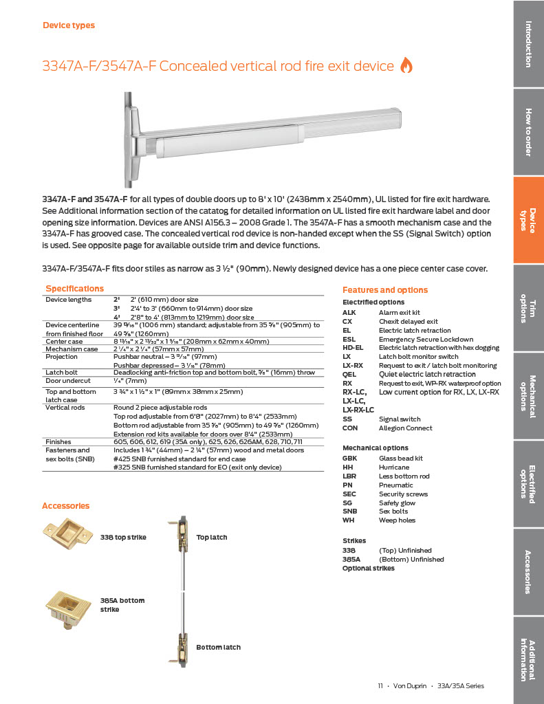 - Von Duprin 3347A/3547A CVR Exit Devices