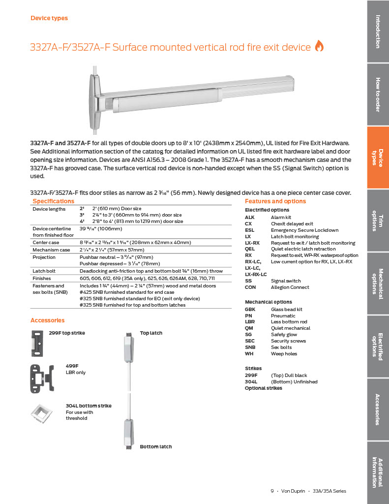- Von Duprin 3327A/3527A SVR Exit Devices