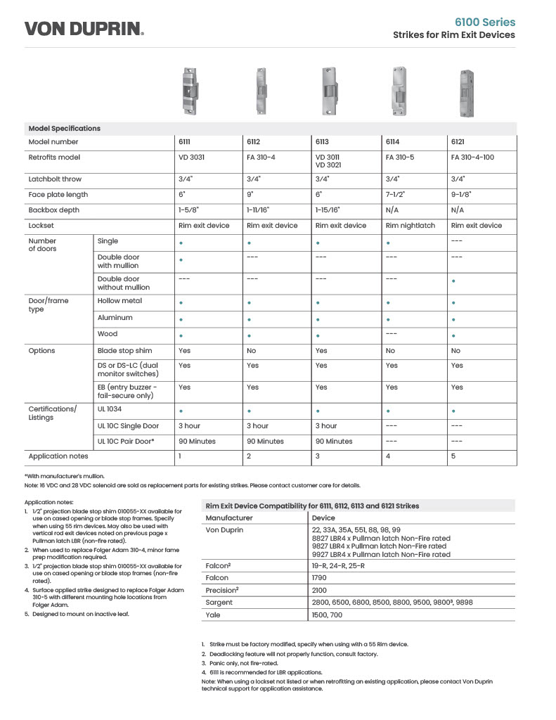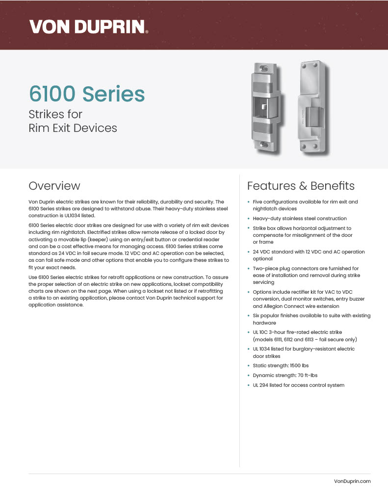 Von Duprin 6114DS Electric Strike with Dual Signal Switch