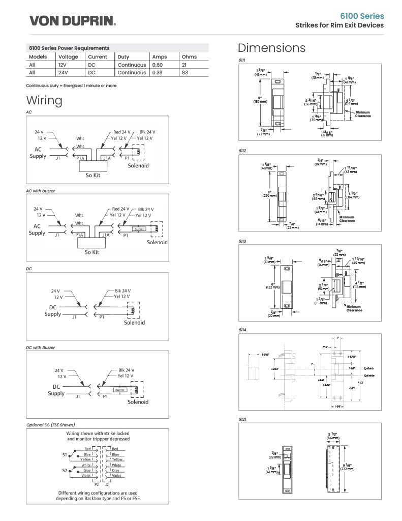 Von Duprin 6121-DS Electric Strike with Dual Signal Switch